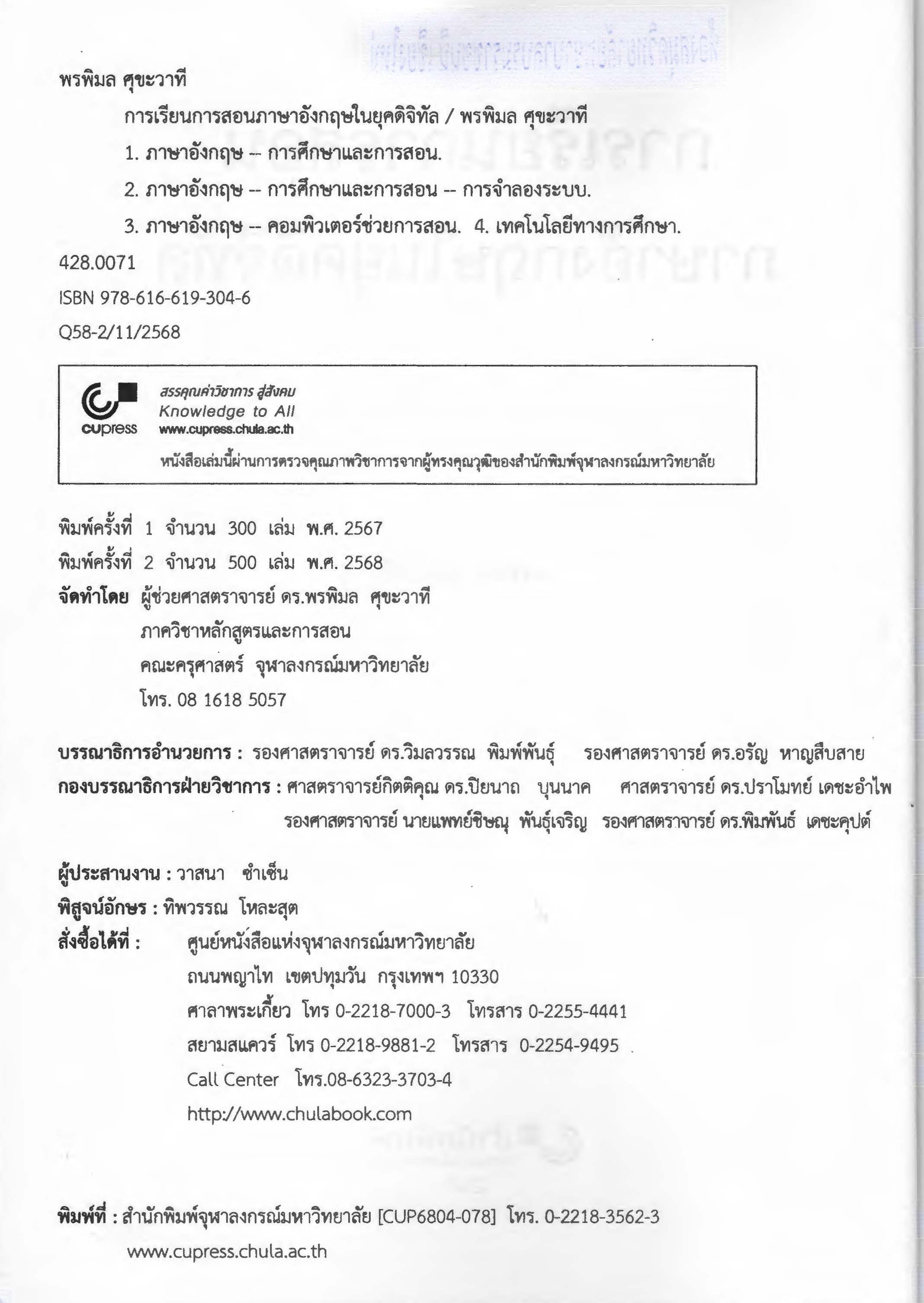 กรุงเทพฯ:สำนักพิมพ์จุฬาลงกรณ์มหาวิทยาลัย; 2568. Print.